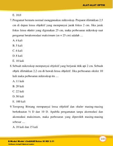 7. Pengamat bermata normal menggunakan mikroskop. Preparat diletakkan 2,5
