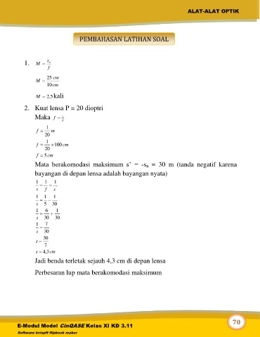 Mata berakomodasi maksimum s’ = -sn = 30 m (tanda negatif karena