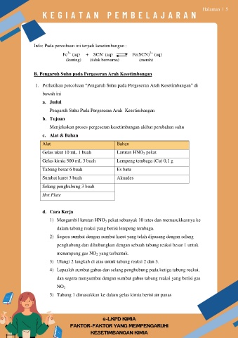 1. Perhatikan percobaan “Pengaruh Suhu pada Pergeseran Arah Kesetimbangan” di
