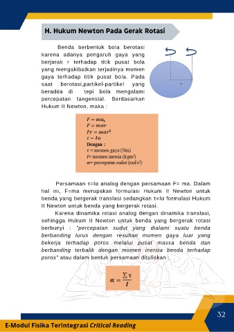 sehingga Hukum II Newton untuk benda yang bergerak rotasi
