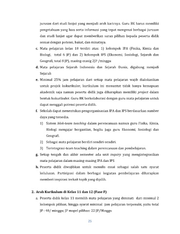 e. Minimal 25% jam pelajaran dari setiap mata pelajaran wajib dialokasikan