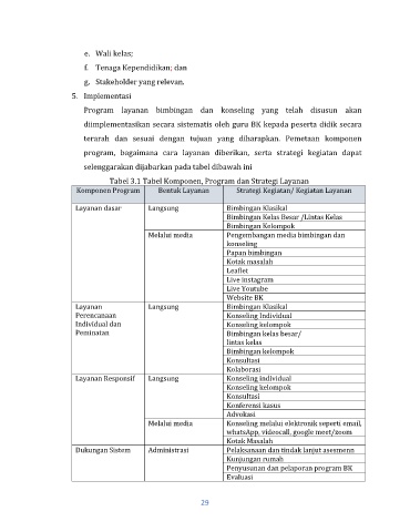 Tabel 3.1 Tabel Komponen, Program dan Strategi Layanan