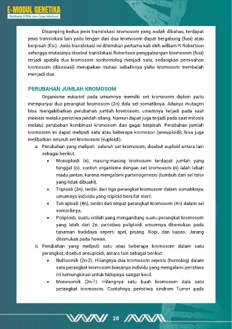 terjadi apabila dua kromosom nonhomolog menjadi satu, sedangkan pemisahan