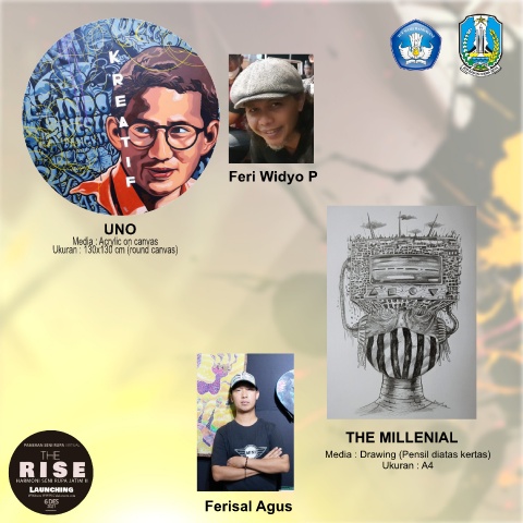 Feri Widyo P UNO Media : Acrylic on canvas Ukuran : 130x130 cm (round canvas) THE MILLENIAL Media : Drawing (Pensil diatas kertas) Ukuran : A4 Ferisal Agus