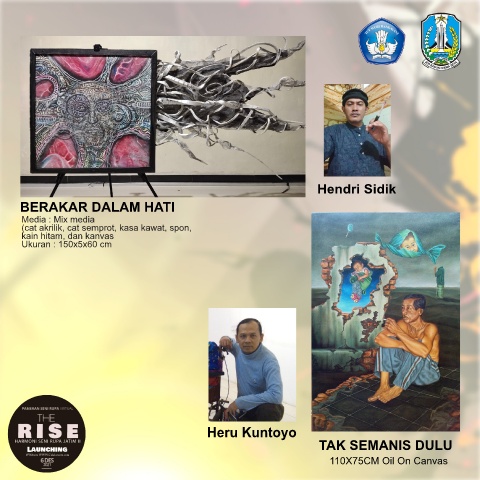 Hendri Sidik BERAKAR DALAM HATI Media : Mix media (cat akrilik, cat semprot, kasa kawat, spon, kain hitam, dan kanvas Ukuran : 150x5x60 cm Heru Kuntoyo TAK SEMANIS DULU 110X75CM Oil On Canvas