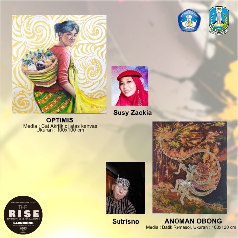Susy Zackia OPTIMIS Media : Cat Akrilik di atas kanvas Ukuran : 100x100 cm Sutrisno ANOMAN OBONG Media : Batik Remasol, Ukuran : 100x120 cm