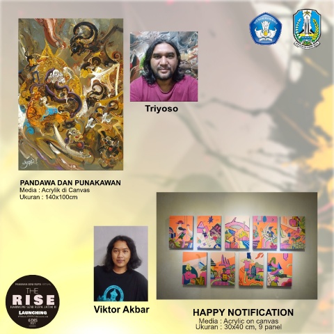 Triyoso PANDAWA DAN PUNAKAWAN Media : Acrylik di Canvas Ukuran : 140x100cm Viktor Akbar HAPPY NOTIFICATION Media : Acrylic on canvas Ukuran : 30x40 cm, 9 panel