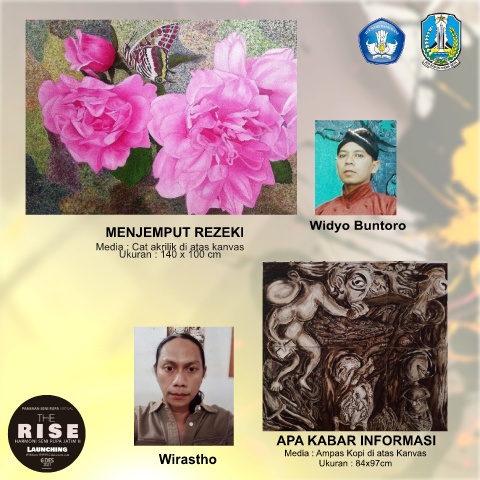 Widyo Buntoro MENJEMPUT REZEKI Media : Cat akrilik di atas kanvas Ukuran : 140 x 100 cm APA KABAR INFORMASI Media : Ampas Kopi di atas Kanvas Wirastho Ukuran : 84x97cm