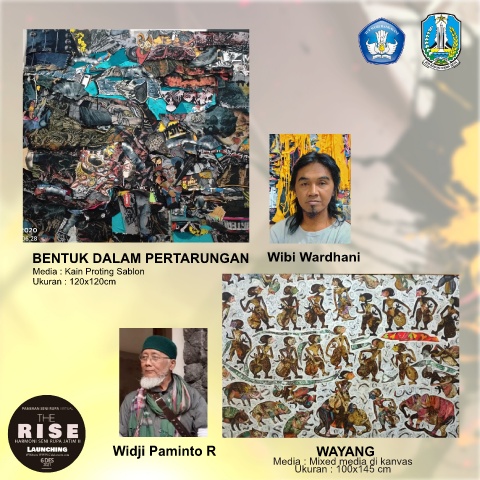 BENTUK DALAM PERTARUNGAN Wibi Wardhani Media : Kain Proting Sablon Ukuran : 120x120cm Widji Paminto R WAYANG Media : Mixed media di kanvas Ukuran : 100x145 cm