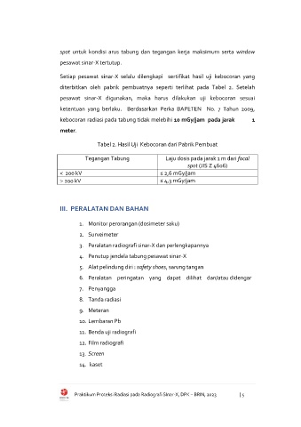 pesawat sinar-X digunakan, maka harus dilakukan uji kebocoran sesuai
