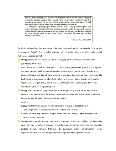 Perdagangan Bebas”. Teks tersebut ataupun teks eksposisi lainnya memiliki kaidah-kaidah