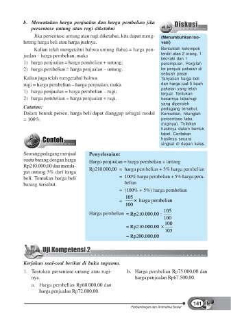 Dalam bentuk persen, harga beli dapat dianggap sebagai modal  Kemudian, hitunglah