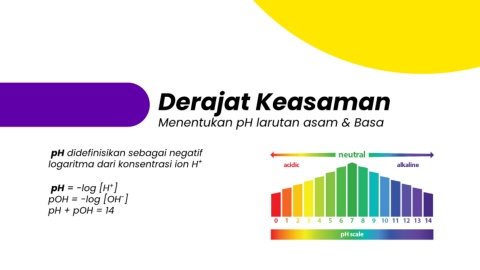 Derajat Keasaman Menentukan pH larutan asam & Basa pH didefinisikan sebagai negatif logaritma dari konsentrasi ion H + + pH = -log [H ] - pOH = -log [OH ] pH + pOH = 14
