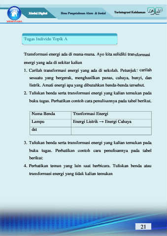 3. Tuliskan benda serta transformasi energi yang kalian temukan pada
