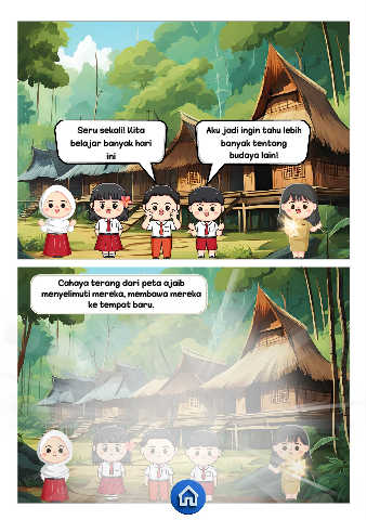 Seru sekali! Kita Aku jadi ingin tahu lebih belajar banyak hari banyak tentang ini budaya lain! Cahaya terang dari peta ajaib menyelimuti mereka, membawa mereka ke tempat baru.