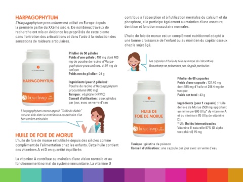 mg de poudre de racine d’Harpa- Les capsules d’huile de foie de morue du Laboratoire