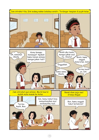 Jam istirahat tiba, Dini sedang makan bekalnya sendiri. Terdengar tangisan di pojok kelas.
