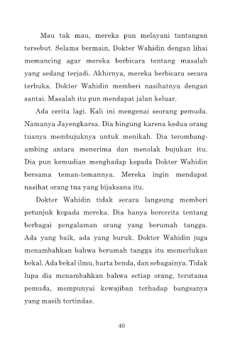 terbuka. Dokter Wahidin memberi nasihatnya dengan