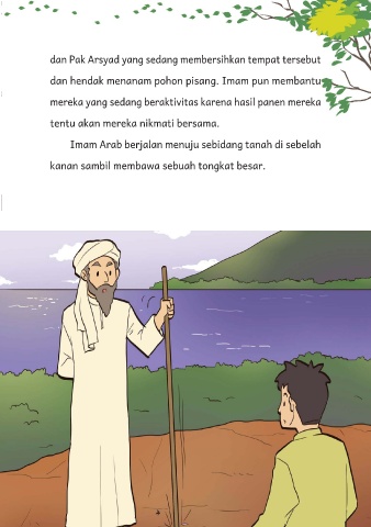 Imam Arab berjalan menuju sebidang tanah di sebelah
