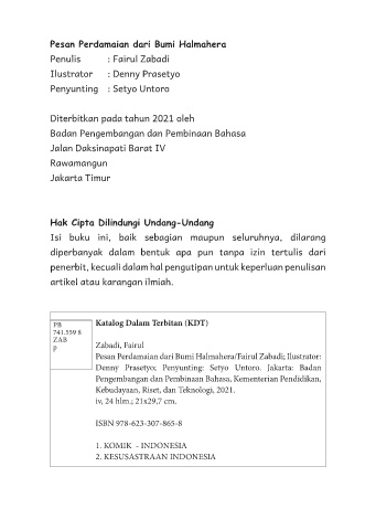 Pesan Perdamaian dari Bumi Halmahera/Fairul Zabadi; Ilustrator: