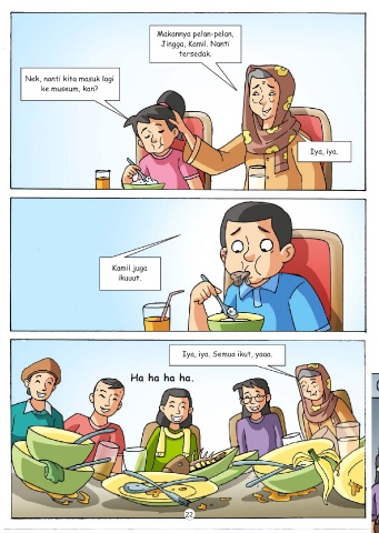 Makannya pelan-pelan, Jingga, Kamil. Nanti tersedak. Nek, nanti kita masuk lagi ke museum, kan? Iya, iya. Kamil juga ikuuut. Iya, iya. Semua ikut, yaaa. Ha ha ha ha. 22
