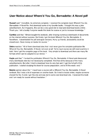 User Notice about Where'd You Go, Bernadette: A Novel pdf