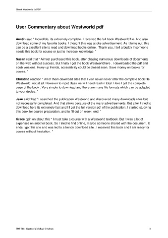 on the web without success. But finally I got the book Westworldhere . I downloaded the pdf and