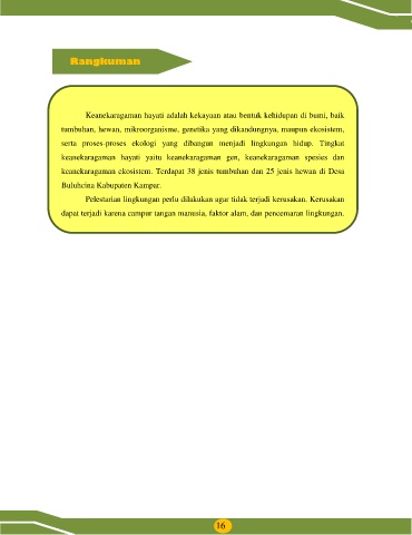 keanekaragaman ekosistem. Terdapat 38 jenis tumbuhan dan 25 jenis hewan di Desa