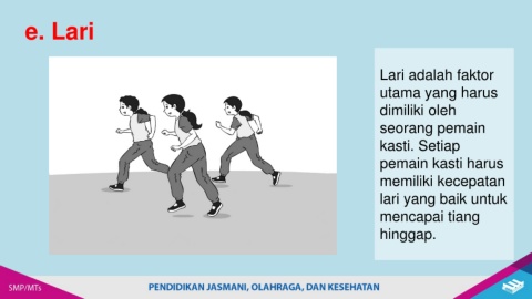 e. Lari Lari adalah faktor utama yang harus dimiliki oleh seorang pemain kasti. Setiap pemain kasti harus memiliki kecepatan lari yang baik untuk mencapai tiang hinggap.