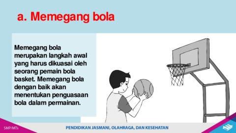 a. Memegang bola Memegang bola merupakan langkah awal yang harus dikuasai oleh seorang pemain bola basket. Memegang bola dengan baik akan menentukan penguasaan bola dalam permainan.