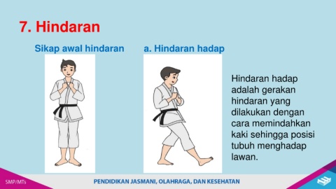 7. Hindaran Sikap awal hindaran a. Hindaran hadap Hindaran hadap adalah gerakan hindaran yang dilakukan dengan cara memindahkan kaki sehingga posisi tubuh menghadap lawan.