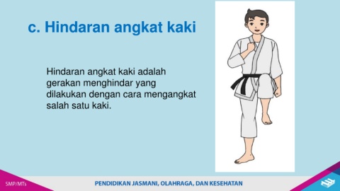 c. Hindaran angkat kaki Hindaran angkat kaki adalah gerakan menghindar yang dilakukan dengan cara mengangkat salah satu kaki.