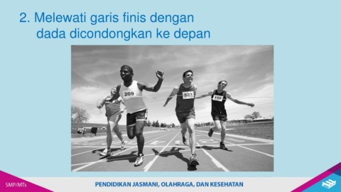 2. Melewati garis finis dengan dada dicondongkan ke depan