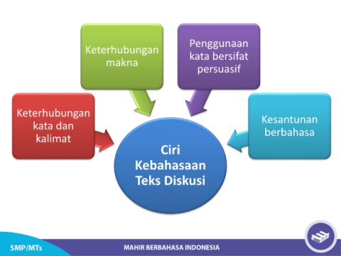 Penggunaan Keterhubungan kata bersifat makna persuasif Keterhubungan kata dan Kesantunan kalimat berbahasa Ciri Kebahasaan Teks Diskusi