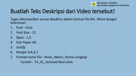 Buatlah Teks Deskripsi dari Video tersebut!