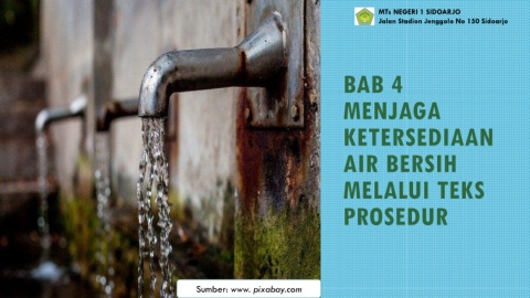 MTs NEGERI 1 SIDOARJO Jalan Stadion Jenggolo No 150 Sidoarjo BAB 4 MENJAGA KETERSEDIAAN AIR BERSIH MELALUI TEKS PROSEDUR Sumber: www. pixabay.com