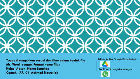 Tugas dikumpulkan sesuai deadline dalam bentuk file                                                                            Dikirim ke Link Google Drive Berikut :