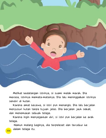 Karena amat kecewa, si istri pun menangis. Dia lalu berjalan