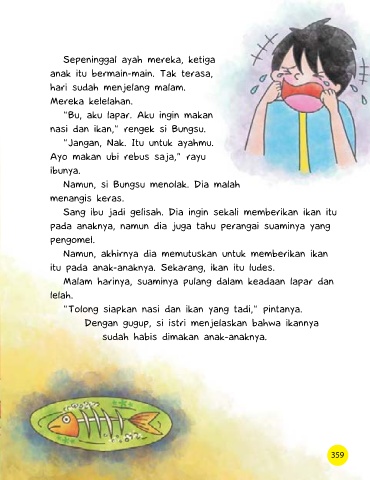 nasi dan ikan,” rengek si Bungsu.