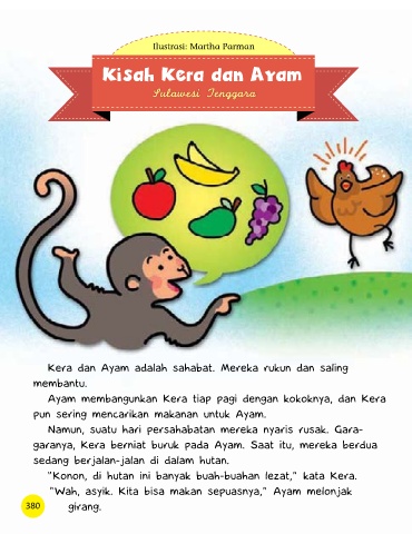 “Konon, di hutan ini banyak buah-buahan lezat,” kata Kera.