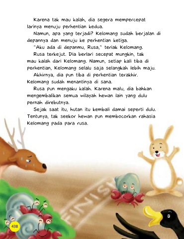”Aku ada di depanmu, Rusa,” teriak Kelomang.