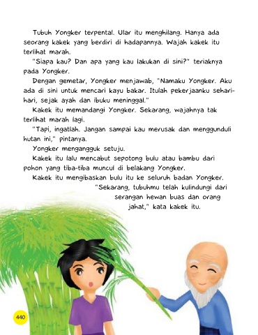 Kakek itu lalu mencabut sepotong bulu atau bambu dari