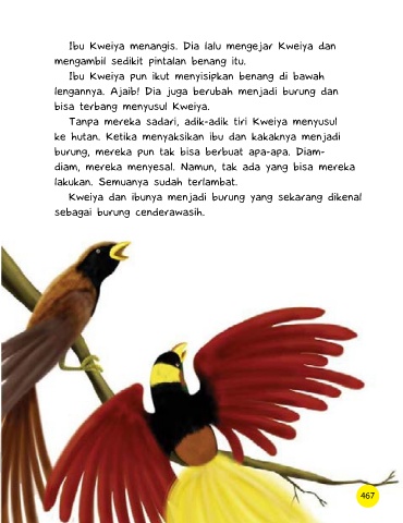 Kweiya dan ibunya menjadi burung yang sekarang dikenal