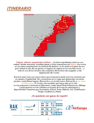 disponibilidad. Pasaremos por Ouarzazate, Erfoud, Ifrane, Meknes, Fez, Chefchaouen,