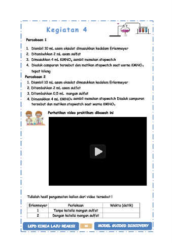 4. Dimasukkan 4 mL KMNO 4 sambil menekan stopwatch Diaduk campuran