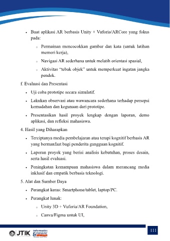 • Buat aplikasi AR berbasis Unity + Vuforia/ARCore yang fokus