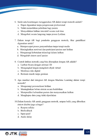 10. Dalam konteks AR untuk gangguan motorik, umpan balik yang diberikan