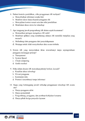 6. Dalam konteks pendidikan, etika penggunaan AR meliputi?