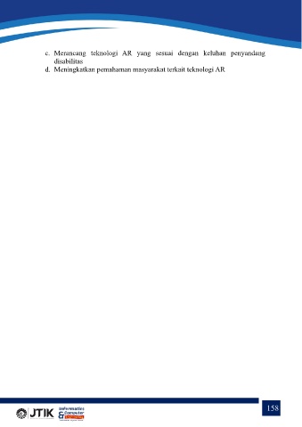 c. Merancang teknologi AR yang sesuai dengan keluhan penyandang disabilitas d. Meningkatkan pemahaman masyarakat terkait teknologi AR 158