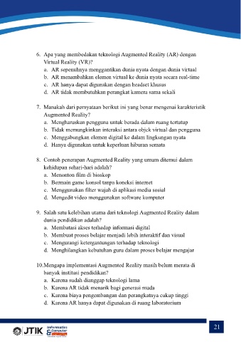 9. Salah satu kelebihan utama dari teknologi Augmented Reality dalam